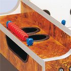 E’ possibile aprire il calciobalilla per accedere al suo interno. Un sostegno di legno sorregge la parte superiore del calciobalilla quando questa è sollevata.
